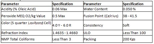 - FFA=0.06%Max,Water=0.05%Max, ULO=<100